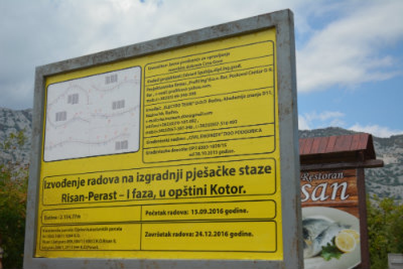U četvrtak, 22.09.2016. godine započeti su radovi na izgradnji pješačke staze koja će povezivati Risan i Perast. Trasa planirane pješačke staze nalazi se sa donje strane, prema moru, uz magistralni put između Risna i Perasta, od ruševnog objekta zadužbine porodice Ljubatović - Doma slijepih (na ulazu u Risan) do ulaska u Perast, u ukupnoj dužini cca. 2100m.