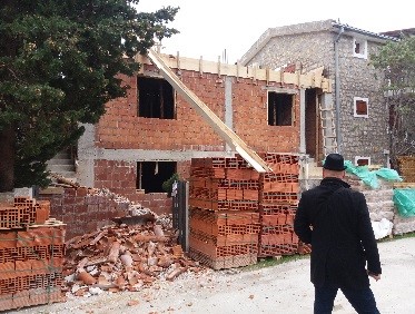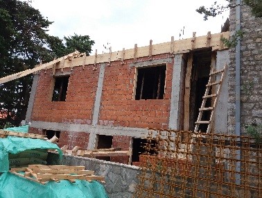 - Na dijelu kat. parc. br. 1280/2 i 1280/3 KO. Buljarica I izvode se radovi na dogradnji i nadogradnji postojećeg kamenog objekta. U zadnjem dijelu izvršena je dogradnja objekata u osnovi cca 20m2, spratnosti P+1, sa ostavljenim ankerima za dalju gradnju, dok je sa postojećeg kamenog objekta uklonjen krov i priprema se prostor za dalju gradnju.